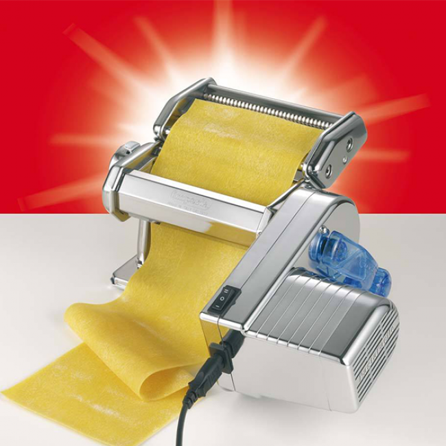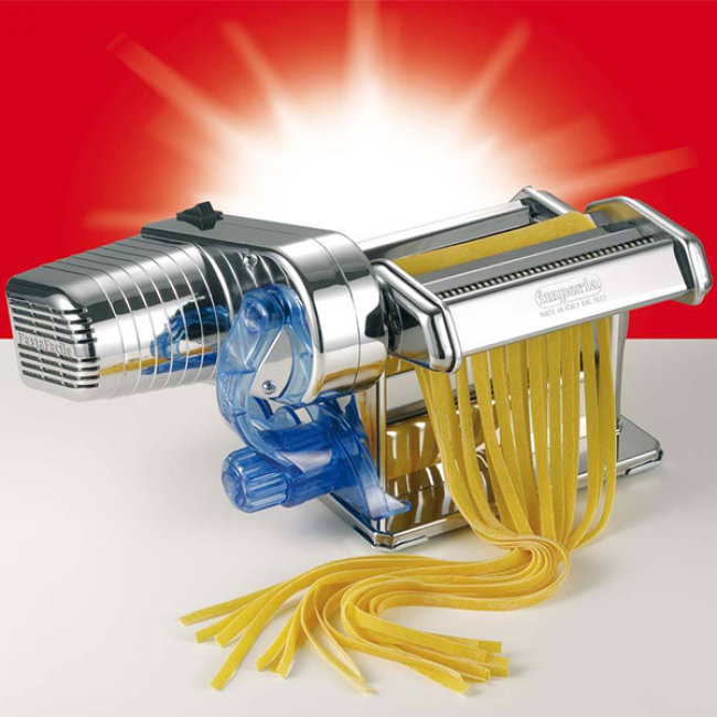 Локшинорізка-тісторозкатка електрична IMPERIA 650-це пастамашина з блоком електроприводу і вбудованим валом для розкочування і розрізання тіста.