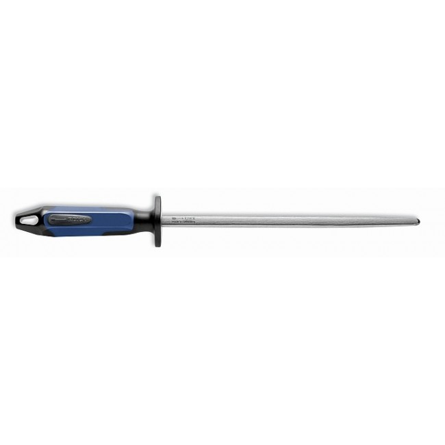 Сталь загартована до 66HRС, поверхня покрита для тривалого захисту від корозії, а ручки жорстко закріплені. Кожна сталь перевіряється на якість і має штамп «F. DICK Made in Germany ». Ви можете бути впевнені, що купуючи ці мусати, ви отримуєте якість, перевірену часом.